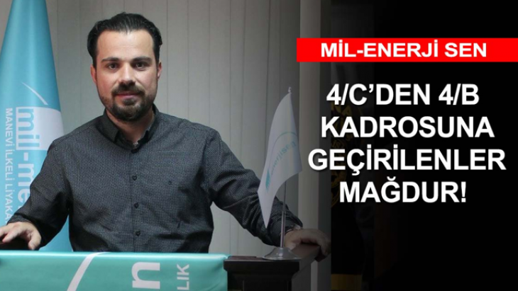 Mil-Enerji Sen Genel Başkan Yardımcısı Koyuncu, 4/C’den 4/B statüsüne geçirilen ancak mevcut 4/B kadrosundakiler gibi özlük haklarından yeterince yararlandırılmayan kamu çalışanlarının sorunlarının bir an önce çözüme kavuşturulmasını istedi...